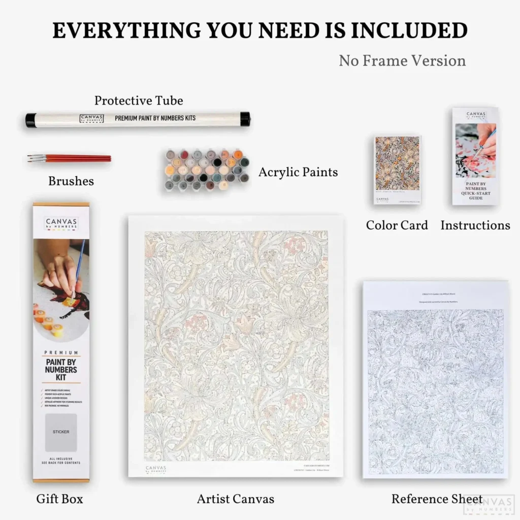 Your Canvas by Numbers kit includes everything you need to complete a stunning masterpiece: